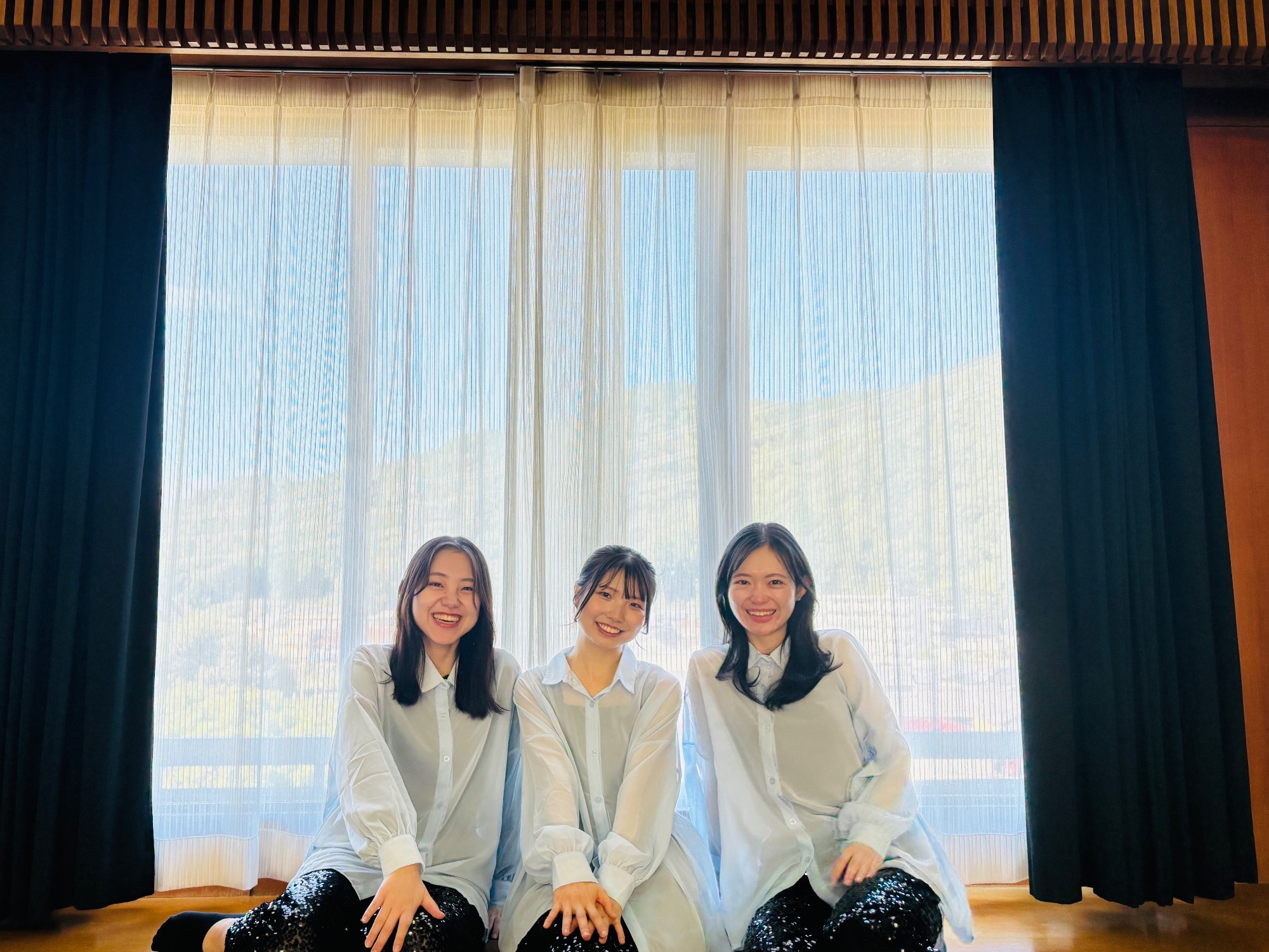 5回生の"R"iho "Y"ukino "S"ato "M"utsukoの4人でリズムに乗ってダンスを楽しみます